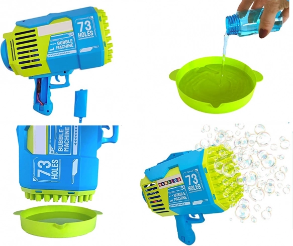 Diese leistungsstarke Seifenblasenpistole verwandelt jeden Moment in ein magisches Spektakel. Einfach die Lösung in die Schale füllen, den Kopf eintauchen und den Knopf drücken – Dutzende Düsen erzeugen gleichzeitig einen stetigen Strom von Blasen. Ideal für Geburtstagsfeiern, Hochzeiten, Grillabende und Spiele im Garten.