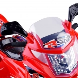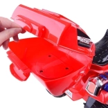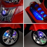 Die Bedienung ist kinderleicht: Start per ON/OFF-Taste mit realistischem Motorsound, Gas über das Pedal und automatische elektrische Bremse beim Loslassen des Pedals. Kinder freuen sich über fröhliche Melodien, Seitenspiegel, klaren Windabweiser und das nützliche Topcase für Kleinigkeiten.