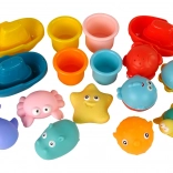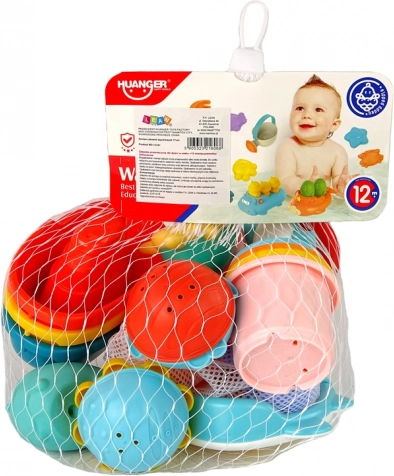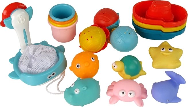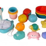 Entdecken Sie den Zauber des Badens mit einem farbenfrohen Set an Meerestieren, das jedes Bad in ein Spiel verwandelt. Kinder können die Tiere mit dem Netz fangen, die Boote auf der Wasseroberfläche treiben lassen und mit den Gummifiguren Wasser spritzen. Angenehme Pastellfarben und vielfältige Formen regen die Fantasie an, während das weiche Material sanft zu kleinen Händen ist.