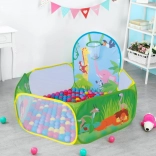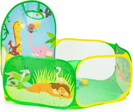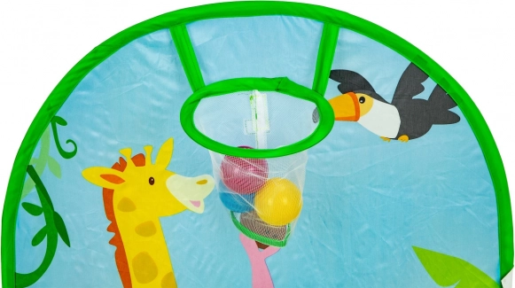 Zum Set gehören 50 Kunststoffbälle (Ø 6 cm), die das Zelt in ein spaßiges Trockenballbad verwandeln. Der integrierte Wurfkorb motiviert zur Bewegung und fördert Koordination und Zielgenauigkeit. Der robuste Boden ist für das Spielen drinnen und draußen ausgelegt.
