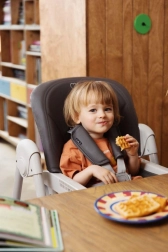 Der Fütterungsstuhl MoMi GOJO ist mit 5-Punkt-Sicherheitsgurten ausgestattet, damit Ihr Kind sicher sitzt, während Sie in Ruhe seinen Speiseplan erweitern.