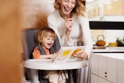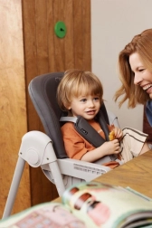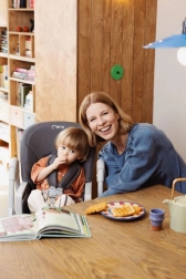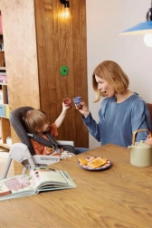 Der Hochstuhl MoMi GOJO verfügt außerdem über eine zusätzliche Reduzier-Einlage für kleinere Kinder.