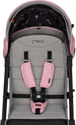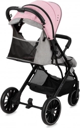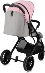 Dank der großen Räder – vorne 7", hinten 10" – hat der Kinderwagen MoMi ESTELLE DAKAR einen geländegängigen Charakter und den perfekt passenden Spitznamen DAKAR erhalten. Die grau-rosa Version ist ideal für Ausflüge mit Ihrer kleinen Prinzessin.