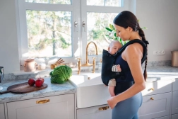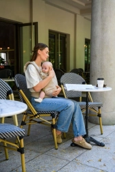 Geeignet zum Tragen vorn ab ca. 3 Monaten und auf dem Rücken ab ca. 6 Monaten bis zu 20 kg. Der hypoallergene, atmungsaktive Stoff sorgt auch bei längeren Tragezeiten für ein angenehmes Klima. Dank der kompakten Maße nach dem Zusammenfalten und der Gummibänder zum Fixieren der Gurtenden ist Tragen und Verstauen einfach und elegant.