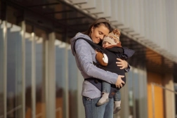 Ein breiter Hüftgurt, weiche Schultergurte und abgedeckte Schnallen verteilen das Gewicht und erhöhen den Tragekomfort auch bei längerer Nutzung. Die abnehmbare Kapuze schützt den Kopf des Kindes.
