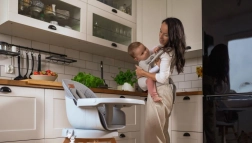 Das breite, verstellbare Panel hält den Rücken in einer natürlichen Rundung und gewährleistet die M-Position der Beine. Das unterstützt die gesunde Entwicklung von Wirbelsäule und Hüftgelenken.