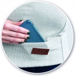 Eine kleine Tasche für Kleinigkeiten, Gummibänder zum Fixieren der Gurtenden und das kompakte Packmaß machen die Trage zum idealen Begleiter zu Hause und unterwegs.