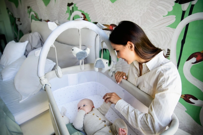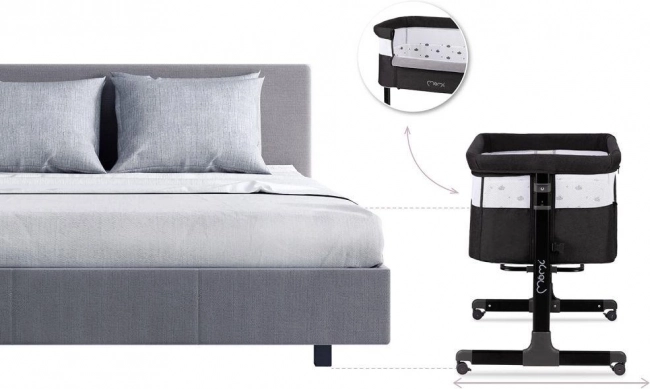 - Mit der sechsstufigen Höhenverstellung stellen Sie das Bett auf die richtige Höhe ein, halten Ihr Baby in Ihrer Nähe und sorgen für Komfort.
