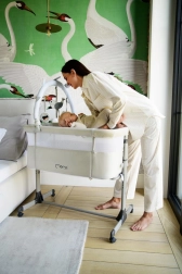 - Mit der sechsfachen Höhenverstellung stellen Sie das Babybett auf die passende Höhe ein, halten Ihr Kind in Ihrer Nähe und sorgen für Komfort.