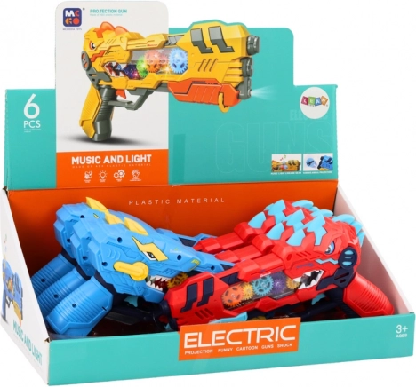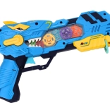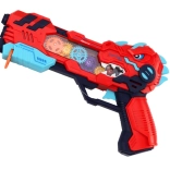 Entdecken Sie actionreichen Spaß mit der Pistole in Dinosaurierform, die Dinosaurierprojektionen, Lichteffekte und Soundeffekte kombiniert. Jeder Druck auf den Abzug startet eine Lichtshow mit rotierenden, beleuchteten Zahnrädern und realistischen Geräuschen.