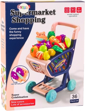 Entdecken Sie ein großartiges Set für das Kaufmannsladen-Spiel – ein großer Kinder-Einkaufswagen mit einem farbenfrohen Set aus Obst und Gemüse zum Schneiden. Der Wagen besteht aus strapazierfähigem Kunststoff, verfügt über breite Räder für eine stabile Fahrt und einen bequemen Griff für einfaches Schieben. Dank der realistischen Details der Lebensmittel genießen Kinder stundenlange, sichere und sinnvolle Unterhaltung.