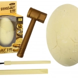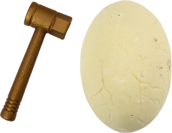 Im Set ist alles enthalten: ein Gips-Dinosaurier-Ei und praktische Werkzeuge – Hämmerchen und Meißel. Die Verpackung ist außerdem als Geschenk gestaltet und eignet sich daher hervorragend als originelle Überraschung für kleine Dinosaurier-Fans.