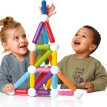 Stäbe und Kugeln verbinden sich mit einem einzigen „Klick“. Kinder bauen schnell Türme, Brücken und kreative 3D-Formen ohne unnötige Frustration.