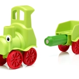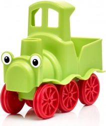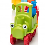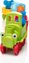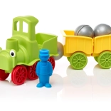 Kinder bauen eine Lokomotive und drei Wagen, setzen zwei Tiere aus drei Teilen zusammen und fügen den Lokführer hinzu. Die einzelnen Tierteile lassen sich beliebig kombinieren – so entstehen reale und fantasievolle Tiere, die kreatives Denken und Augen-Hand-Koordination fördern.