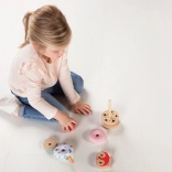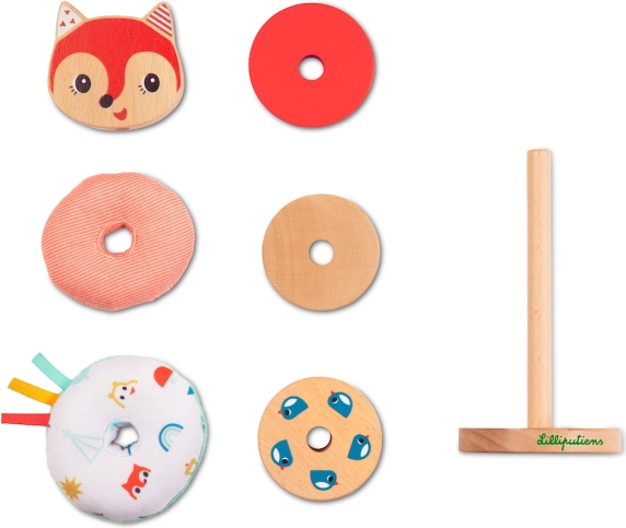 Mit der Stapelpyramide Fuchs Alice können Kinder ein kreatives Spiel genießen, das ihre motorischen Fähigkeiten fördert. Sie besteht aus verschiedenen Teilen, darunter 4 Holzteilen und 2 Textilteilen sowie einer Holzbasis. Jedes Spiel mit dieser Pyramide ist anders, dank der Möglichkeit, die Teile unterschiedlich zusammenzusetzen.