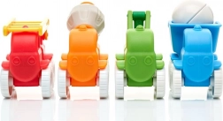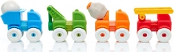 Bauen Sie ein Feuerwehrauto, einen Lastwagen, einen Betonmischer und einen Radlader – oder tauschen Sie die Teile untereinander. Die Variabilität der Teile fördert Fantasie und thematisches Spiel.