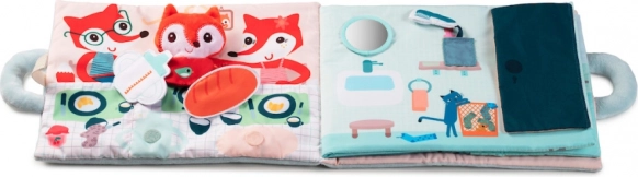 Enthalten ist eine kleine Fuchsfigur, die zu interaktivem Spiel einlädt. Das Buch besteht aus 100 % Polyester, ist pflegeleicht und kann im Schonwaschgang bei 30 °C gewaschen werden. Die Maße 28 × 22 cm erleichtern die Handhabung zu Hause und unterwegs.