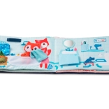 Stoffseiten mit unterschiedlichen Materialien und Klappelementen fördern die Feinmotorik und die sensorische Wahrnehmung.