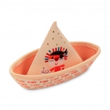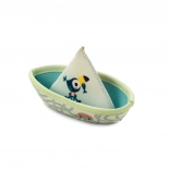 Drehen Sie das Bötchen um, füllen Sie es mit Wasser und beobachten Sie, wie es sanft durch die Öffnungen im Segel spritzt – ideal für sensorisches Spielen in der Badewanne.