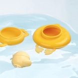 Die Pyramidenteile mit Ente Gaspard schwimmen an der Oberfläche und laden Kinder zum Bauen direkt in der Badewanne ein. Sie trainieren Geduld, Koordination und Feinmotorik – spielerisch.