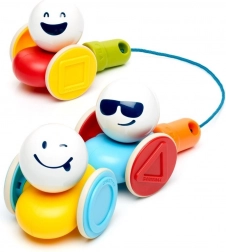 Metallkugeln mit Gesichtern und vielfältige Autoshapes regen zum Bauen wackeliger, lustiger Konstruktionen an, die Koordination und Geduld fördern.