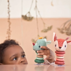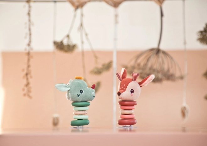 Rehkitz Stella ist ein unglaublich unterhaltsames Spielzeug, das sich bei der kleinsten Berührung bewegt. Der textile Kopf und die zertifizierten Holzringe bieten Sicherheit und Qualität. Geeignet für Kinder ab 6 Monaten, was es zu einem perfekten Begleiter für die Kleinsten macht.