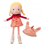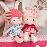 Puppe Lena ist 30 cm groß und aus angenehm weichen Textilien gefertigt, die zum Umarmen einladen. Zwei blonde Zöpfe sowie gestickte Augen, Nase und ein Lächeln gewährleisten, dass das Spielzeug sicher und robust auch für die Kleinsten ist. Den Look vervollständigen ein Kleid mit Waldmuster, ein wärmender Schal und eine abnehmbare Mütze mit Öhrchen und Horn – ein verspielter Verweis auf Lenas Einhorn.
