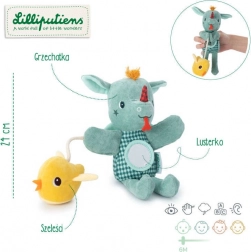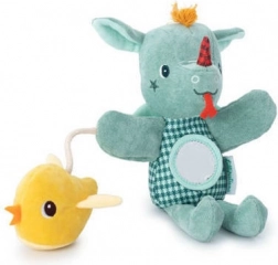 Die aktive Drachen-Handpuppe in Grün mit rotem Horn und Zünglein eignet sich ideal zum Geschichtenerzählen, Vorlesen und zum Beruhigen vor dem Schlafengehen. Dank der Öffnungen in den Pfoten lässt sie sich leicht bewegen und animiert Kinder zum Mitspielen. Integrierte Elemente – die Rassel im Köpfchen, das Spiegelchen am Bauch und das knisternde Küken – sorgen für sensorische Reize und Spielspaß.