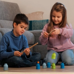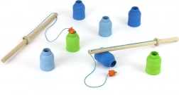 Fangt die Holzflaschen mit Hilfe von Haken, Ring und Fisch – rein mechanisch, sicher und spaßig. Kinder trainieren ihre Feinmotorik und ihr Gefühl für Bewegung.