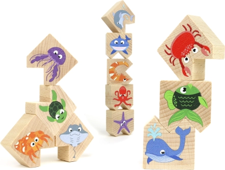 Tauchen Sie ein in die Unterwasserwelt, in der Kinder ihre feinmotorischen Fähigkeiten und ihr Gedächtnis durch ein Spiel voller bunter Meerestiere entwickeln. Dieses Balancespiel bietet nicht nur Spaß, sondern auch einen pädagogischen Mehrwert für Ihre Kinder. Wunderschön illustrierte, ineinandergreifende Blöcke stellen eine Herausforderung für die Fähigkeiten und die Geduld Ihrer Kleinen dar.