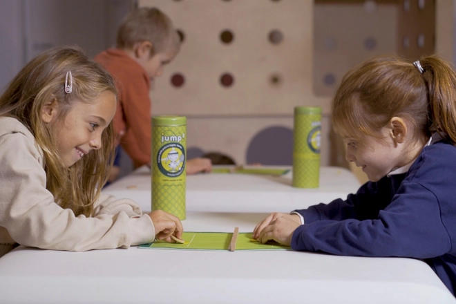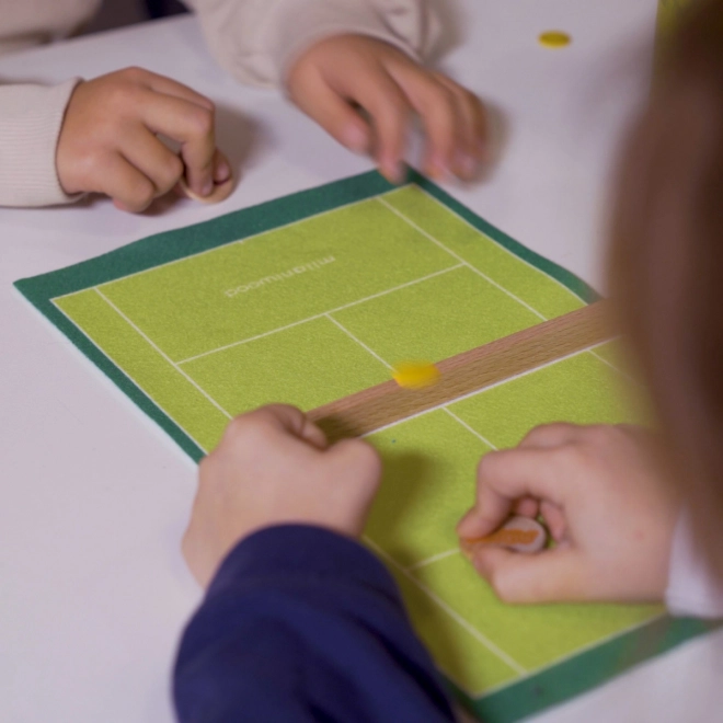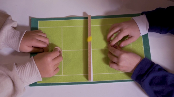 Das Spiel Sprung! Tennis ist ein großer Spaß für die ganze Familie. Stellen Sie zunächst das Spielfeld zusammen und legen Sie die Spielzeit auf mindestens 3 Minuten fest. Ziel des Spielers ist es, die gelbe Scheibe so zu servieren, dass sie auf dem Spielfeld des Gegners landet, dabei aber das Netz zu vermeiden. Das Spiel ist äußerst unterhaltsam und fördert strategisches Denken.