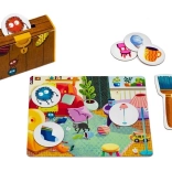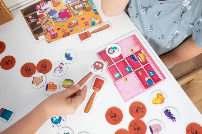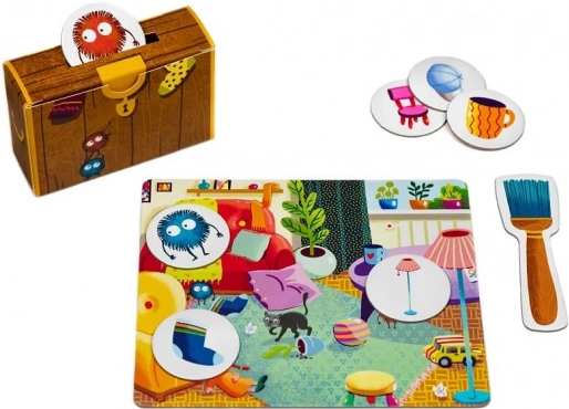 Dieses Spiel haucht dem Aufräumen neues Leben ein! Die Spieler versuchen, die bösartigen Staubkugeln zu stoppen, bevor sie ihre Sachen wie Socken, Puppen oder Autos erreichen. Kinder lernen, Gegenstände nach Typ, Größe oder Farbe zu sortieren, was Gedächtnis, Konzentration und Beobachtungsgabe stimuliert.