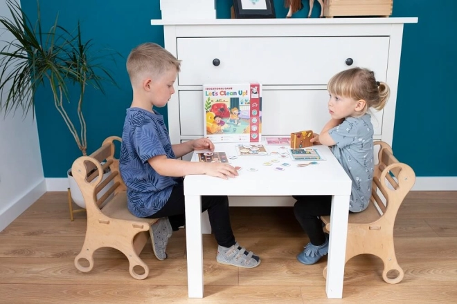 Das Spiel Lass uns aufräumen! lehrt Kinder, Gegenstände zu sortieren und verbessert ihre kognitiven Fähigkeiten.