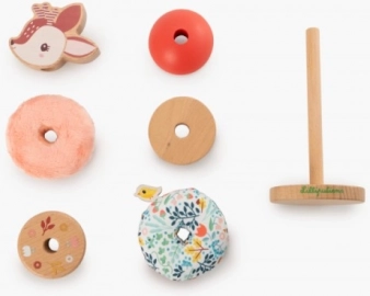 Rehkitz Stella lädt kleine Baumeister in die Welt des Entdeckens ein. Diese Stapel-Pyramide aus hochwertigem Holz und weichen Textil-Elementen fördert die Auge–Hand-Koordination, Geduld und Geschicklichkeit. Die Teile können in beliebiger Reihenfolge gestapelt werden – es gibt kein Richtig oder Falsch, sodass jedes Arrangement ein wenig anders aussieht und die Kreativität anregt.