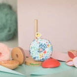 Der sichere und robuste Holzsockel sorgt für Stabilität beim Spielen. Die Textilteile lassen sich einfach bei 30 °C (Schonwaschgang) waschen, damit das Spielzeug sauber bleibt und bereit für neue Abenteuer ist.