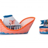 Gehen Sie mit dem mutigen Löwen Jack und seiner Crew auf Fantasiereise. Das farbenfrohe Piratenschiff aus weichem Neopren ist für kleine Hände ergonomisch gestaltet und bietet sicheren Spaß in der Badewanne und am Pool. Die obere Schiffspartie mit Esel Ignace lässt sich leicht abnehmen – so erhalten Kinder ein größeres und ein kleineres Boot für vielfältige Spiele und zur Förderung der Vorstellungskraft.