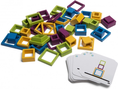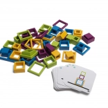Dieses Logikspiel ist für 2 bis 4 Spieler konzipiert und ideal für Kinder ab 8 Jahren. Die Spieler decken Vorlagenkarten auf und versuchen mithilfe der farbigen Rahmen, das Bild so schnell wie möglich zu legen. Wer ist der beste und schnellste Baumeister? Der Sieg hängt von Geschwindigkeit und Genauigkeit ab! Der Packungsinhalt umfasst 48 Rahmen in verschiedenen Größen und 50 Vorlagenkarten, die unzählige Kombinationsmöglichkeiten und Stunden voller Spaß bieten.