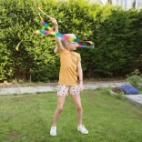 Mit dem Tanzband und Stab können Kinder zuhause oder im Garten eigene Bewegungsvorführungen gestalten. Die Regenbogenfarben des Bandes in Kombination mit Musik inspirieren zu Freude an Tanz und Bewegung. Das Produkt ist für Kinder ab 3 Jahren geeignet, sowohl für Mädchen als auch für Jungen, die ihre Hand-Auge-Koordination und motorischen Fähigkeiten verbessern möchten.