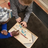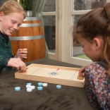 Dank des robusten und tragbaren Designs können Sie das Spiel überallhin mitnehmen – sei es in die Schule, auf ein Picknick oder zu jeder anderen Gelegenheit, bei der Sie eine tolle Zeit haben möchten. Es enthält ein zweiseitiges Spielfeld, 10 Chips und 2 Schieber, was stundenlangen Spaß garantiert.