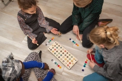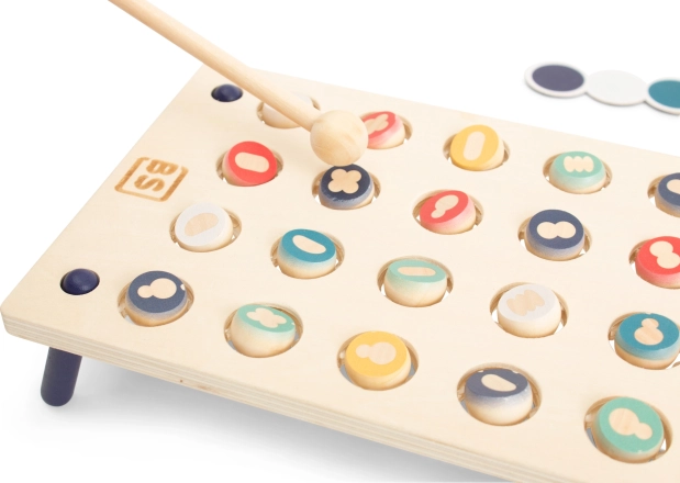 Dieses Spiel ist ideal für 2-4 Spieler im Alter von 6 Jahren. Die Spieler wechseln sich beim Würfeln ab und versuchen dann, das passende Holzstück einzusetzen. Ziel des Spiels ist es, so schnell wie möglich seine eigene Karte zu füllen und der Gewinner zu werden.