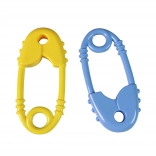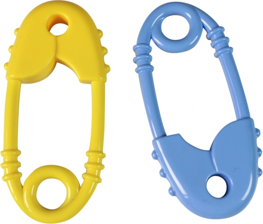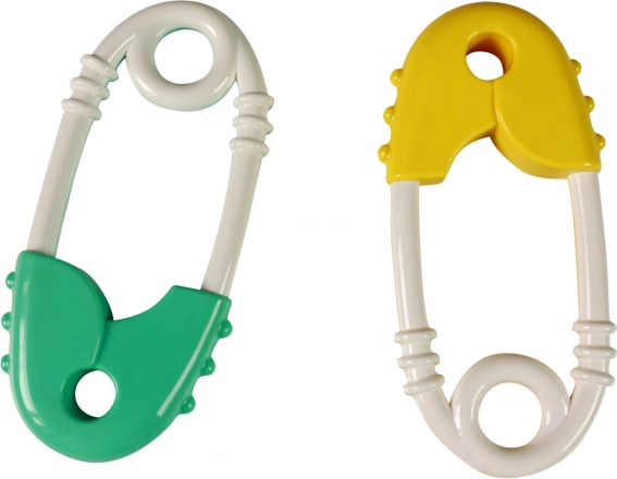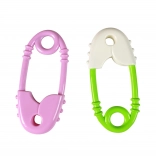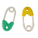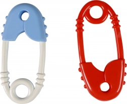 Dieses farbenfrohe Rassel- und Beißspielzeug in Form einer großen Sicherheitsnadel ist für die Kleinsten konzipiert. Es kombiniert einen stimulierenden Rassel-Effekt mit weichen Texturen zur Beruhigung des Zahnfleischs während des Zahnens. Dank der ergonomischen Form mit rundem Griff liegt es auch in kleinen Händchen sehr gut.