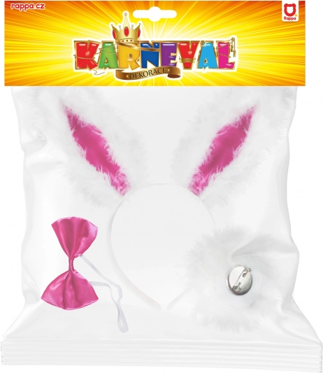 Verwandeln Sie sich im Handumdrehen in ein niedliches Häschen. Dieses komplette Set enthält alles, was Sie für ein auffälliges und fotogenes Kostüm brauchen: weiche Ohren am Haarreif, eine auffällige rosa Fliege und einen praktischen ansteckbaren Schwanz. Dank der leichten Konstruktion und angenehmen Materialien lässt es sich den ganzen Abend über bequem tragen.