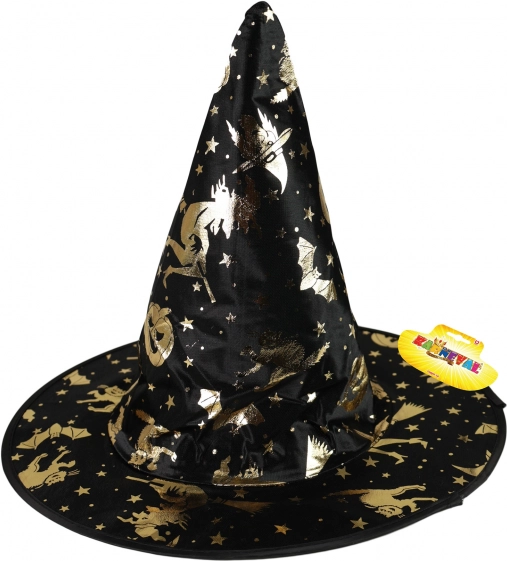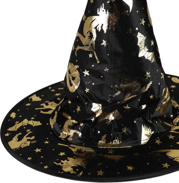 Verleihen Sie dem Kinderkostüm den richtigen Hauch Magie. Der leichte und bequeme Hut in Schwarz ist mit goldenen Verzierungen übersät, die im Licht effektvoll funkeln. Sitzt hervorragend und lässt sich leicht mit Umhang und Maske kombinieren.