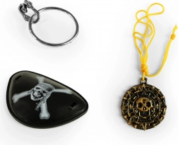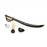 Neben dem Säbel erhältst du eine Augenklappe, ein Medaillon an einer Schnur und einen Ohrring – alles für einen authentischen Piraten-Look im Handumdrehen.