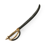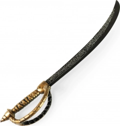 Der gekrümmte Kunststoffsäbel mit dekorativen silbernen Mustern und schwarz-goldenem Griff bietet einen bequemen und sicheren Halt für das Kinderspiel.