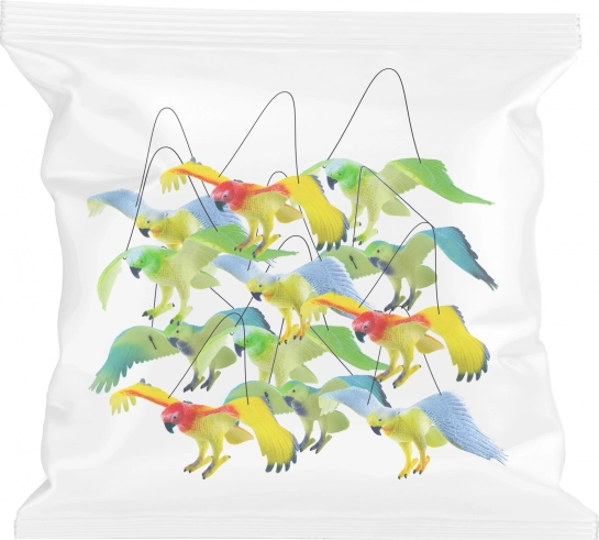 Beleben Sie den Raum mit hängenden Papageien im realistischen Flug. Dank der leichten Konstruktion und dem elastischen Gummiband hängen Sie sie überall einfach auf – über dem Bett, am Fenster oder in der Spielecke. Beim Drücken pfeift der Papagei, was den Spielspaß und die Interaktivität erhöht.