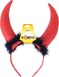 Auffällige Teufelshörner in Maxi-Größe auf einem Satin-Haarreif aus Filz, verziert mit weichen Federn. Ein großartiges Accessoire für das Teufel- oder Teufelin-Kostüm – bequemer Tragekomfort, sofortiger Effekt und stylischer Look.