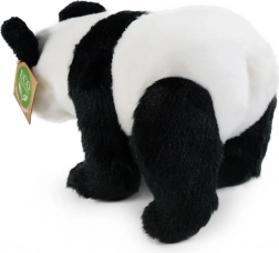 Dieser elegante Plüschpanda in stehender Position besticht durch sein realistisches Aussehen und das sehr angenehme Material. Dank der Handarbeit wirkt er lebensecht und wird zur Zierde im Kinderzimmer und zum treuen Kuscheltier.