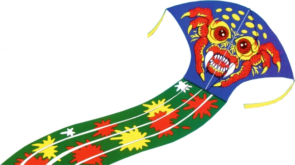 Entdecken Sie die Magie des Fliegens mit diesem farbenfrohen Drachen, der mit seinem auffälligen Monster-Motiv sicherlich Aufmerksamkeit erregen wird. Großartig für Wochenendnachmittage im Park oder am Strand.