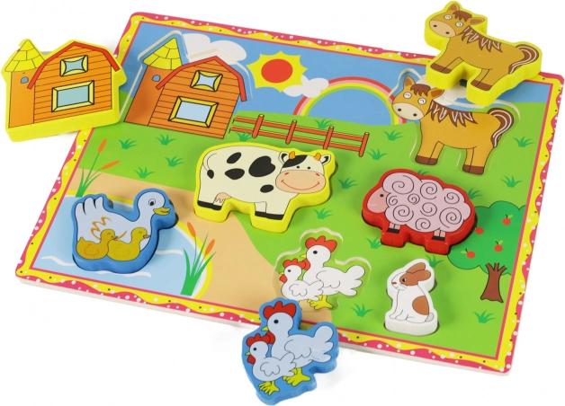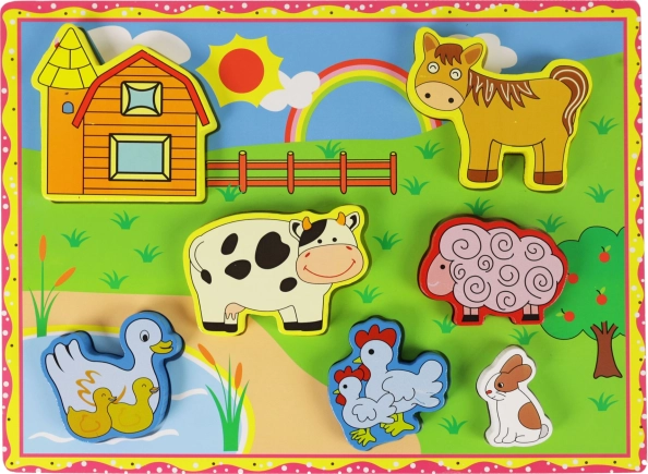Das Holzeinlegepuzzle mit Bauernhoftieren ist ein großartiges Werkzeug zur Förderung der motorischen Fähigkeiten Ihres Kindes. Dank dieses Spiels lernen Kinder, Formen und Tiere zu erkennen. Darüber hinaus: